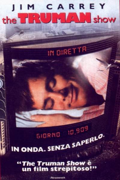 L'esempio per tutti principe di Nazione ideologicamente conformista è quello delgi Stati Uniti. .. L'americano medio la sintetizza, l'ideologia, in una sorta di pappa di rimasticati elementi mitici chiamata l'american dream, il sogno americano. .. D'ideologia americana, sia detto per inciso, a nostra volta siamo così ingozzati che si dà oggi per eccezione un titolo statunitense tradotto. .. Se avessi il potere diassegnare tutti gli Oscar a un sol film, lo eserciterei premiando un .. prodotto di genio .. che .. è stato, credo, un fallimento d'incassi: The Truman Show, di Peter Weir. .. L'uso del mezzo cinematografico aggiunge rilievo all'aspetto, ma la trama avrebbe di per sè dignità letteraria. Il protagonista, Truman, vive, ignorandolo affatto, in un mondo chiuso e artificiale. Cielo, luce, stelle, acqua, nuvole, vento: sono solo meccanismi all'interno della plastica d'un immenso studio televisivo, confinante con un orizzonte dipinto. .. Tutti gli altri, a cominciare dai genitori e dalla moglie per allargarci agli amici, ai compagni di scuola e poi di lavoro, ai vicini di casa, agli sconosciuti abitanti d'un'intera città, sono attori di un copione lungo il quale per primo Truman si muove: sempre all'insegna dell'ottimismo. Poi scopriamo l'esistenza d'una cabina aerea (empirea) ove, collaboratori ai suoi ordini, un onnipotente regista veglia da decenni sul destino di Truman, [mentre] Il dibattersi del protagonista nel mondo chiuso come farfalla prigioniera viene seguito con passione da "quelli di fuori". .. Non mette nemmeno conto enumerare i punti di così radicale negazione dell'american dream. Più giova osservare che il film si spinge, diventando opera mitopoietica, di là da questo. Affronta i temi metafisici capitali. La libertà del volere, meglio denominata libero arbitrio: in quale misura l'uomo lo possegga, se lo possegga. .. L'altro immenso interrogativo filosofico non è progredito di un passo rispetto alla soluzione propostane da Platone nel quarto secolo aC. La scienza ha negli ultimi due decenni reso più attuale che mai, per via empirica, il pensiero del più grande dei filosofi sul funzionamento del cervello e su come l'esere umano percepisca il mondo esterno, sul possedere o meno questo una realtà intrinseca a prescindere dal nostro percepire. Truman prigioniero nello studio televisivo che per lui è il cosmo è come l'individuo incatenato da sempre nella caverna che della realtà può cogliere solo ombre da fuochi proiettate sul fondo e trattarle e considerarle come se la realtà queste fossero. E se l'universo infinito non fosse esso stesso che un luogo di cartone e plastica nel quale recitiamo, ignari, il copione d'un serial? E se il regista di questo, nel mondo vero, non fosse a sua volta che l'inconsapevole ingranaggio di un altro serial racchiuso, esso sì, in un vero "mondo vero"? E se la sequenza continuasse all'infinito?