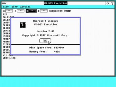 | Windows 2.0 uscì nel 1987, a ridosso del fallimentare Windows 1.0, e vanta un'interfaccia molto più gradevole del suo predecessore. Microsoft insisteva nei suoi sforzi per mettere a punto un sistema operativo universale e semplice da usare. Ma, con questa versione, siamo ancora lontani da un prodotto in grado di sedurre le folle. | I problemi legati alla gestione delle finestre furono risolti, e Windows 2.0, in effetti, era più facile da utilizzare. Questa seconda versione è anche la prima che introduce la barra delle applicazioni, che tornerà in auge con Windows 95. | Windows 2.0, però, non riesce a farsi amare dal grande pubblico, mancando il successo sperato. Microsoft, di conseguenza, intensificò i suoi sforzi, impegnandosi per preparare in fretta una terza versione. |