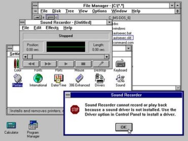 | Il lancio ufficiale di Windows 3.0 risale al 22 maggio del 1990. Questa terza versione rappresenta uno spettacolare balzo in avanti , rispetto alla versione 2.0, soprattutto per quanto riguarda l'interfaccia e la gestione della memoria. Le vendite di Windows 3.0 hanno fatto segnare, molto rapidamente, cifre superiori alle versioni precedenti. Windows 3.0 gestisce i programmi tramite icone, e permette di maneggiare i files molto facilmente. Con questa versione siamo, a tutti gli effetti, di fronte all'antenato del Windows che conosciamo oggi. Tra le altre cose, fa la sua comparsa anche il solitario. | Windows 3.1, nome in codice "Janus", è il successore diretto di Windows 3.0. Uscito nel maggio 1992, introduce qualche novità interessante, tra le quali vale la pena ricordare il gran numero di drivers integrati , anche se molti formati di file restano fuori portata, come per esempio il Jpeg, che risale alla stessa epoca. | Windows 3.1 permette, per la prima volta, la risoluzione di 1024 x 768 pixel con una profondità di colori di 24 bit, migliorando molto il comfort. Il suo pannello di controllo si arricchisce, e l'utente è in grado di mettere a punto il sistema operativo a suo piacimento. Infine diamo al benvenuto al campo minato e a Windows Media Player! |