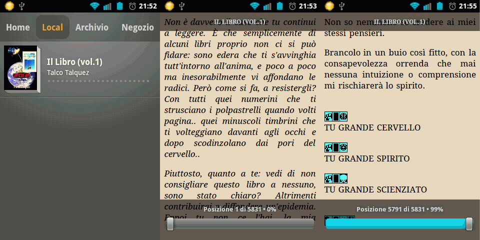 Motorola pro plus (cellulare android 2.3.5, app "CoolReader")
