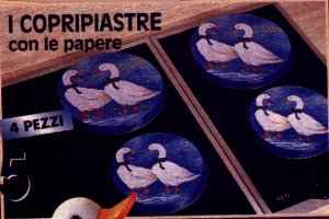 I copripiastre con le papere L.11.900 (€6,15) Utili e decorativi i copripiastra caratterizzati da decori di simpatiche paperette. Sono realizzati in metallo e misurano: 2 pezzi cm 17 di diametro e 2 pezzi cm20 di diametro |