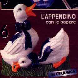 L'appendino con le papere L.10.950 (€5,66) Colorato e decorativo appendino in ceramica caratterizzato da due simpaticissime paperette. E' dotato di 4 gancetti per presine, asciugamani, piccoli utensili e tutto ciò che vi serve in cucina. Misura cm15x18 di altezza. |