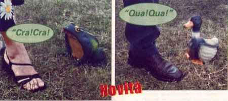 Per decorare il tuo giardino con allegria! Rana parlante L45.000 (€23,24) Anatra parlante L45.000 (€23,24) Una buffa ranocchia ed una simpatica anatra che ti accoglieranno con il loro tipico verso CRA-CRA e QUA-QUA quando ti avvicinerai! In materiale anti-urto resistente all'acqua, agli agenti atmosferici e agli sbalzi di temperatura. Dotate di sensore di movimento. Funzionano con due batterie stilo, comprese. Dimensioni rana cm 18x30, H19, anatra cm 20 x 15, H25 Commento: sono in materiale antiurto, ergo le puoi prendere a calci? |
