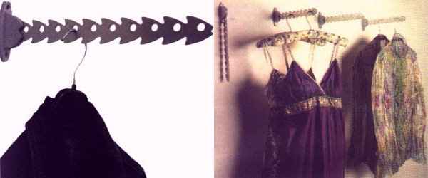 PESCETTO APPENDIABITI!! €8,90 Davvero salvaspazio questo "appendi-appendiabiti"! Ha un piccolo supporto in ABS che si fissa al muro con le viti (non fornite) ed una barra in metallo verniciato che, all'occorrenza, si fissa in posizione perpendicolare per poterci agganciare quanto necessario. Ottimo mentre stai stirando per appoggiare gli abiti già pronti, in terrazza per poter "arieggiare" gli abiti, in camera da letto. Colore grigio acciaio. Dim. cm34; sostiene fino a 15k di peso. Commento: davvero elegante, la liscaccia di pesce nell'armadio! :-) |