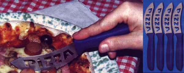 I COLTELLI PER LA PIZZA! €8,90 Con la lama curvilinea ma seghettata, ti facilitano il taglio della pizza! Con la scritta "Pizza" ritagliata all'interno della lama, aggiungono allegria alle tue serate.. pizzaiole! Lunghezza coltello cm21. Lavabile in lavastoviglie. Set di 4 pezzi. Commento: ideona! Però voglio proprio vedere come cazzo te le lava, la lavastoviglie, le incrostazioni all'interno della lama! |