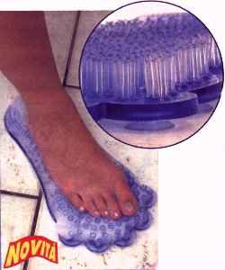 LÀVATI I PIEDI CON IL PIEDE! €12,90 Lo fissi nella vasca da bagno o nella doccia e ti insaponi i piedi senza chinarti! Una piacevolissima novità questo minitappetino a forma di "impronta di piede", con ventose e tantissimi "fili", come erba di un prato sintetico! Basta sfregare il piede sul tappetino per lavarsi i piedi. Ideale per chi è in dolce attesa o ha difficoltà ha piegarsi, è piacevole per tutti: i fili, più resistenti verso il tallone, operano una specie di massaggio che riattiva la circolazione e ti fa sentire meglio! Dim. cm 31 x 16 x 2 Colore azzurro trasparente. Le ventose vanno fissate sulle piastrelle asciutte. |
