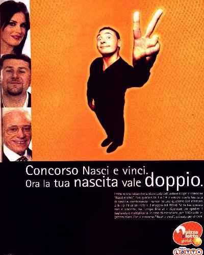 Concorso Nasci e vinci. Ora la tua nascita vale doppio. Entra in una tabaccheria ricevitoria del lotto e scopri il concorso "Nasci e vinci". Puoi giocare da 1 a 5 € e vincere con la tua data di nascita, combinando i numeri in una quaterna (ad esempio 2-5-19-84 se sei nato il 2 maggio del 1974). Se la tua giocata non è vincente, hai tempo fino al 7 dicembre per spedire il tagliando e moltiplicarla, in caso di estrazione, per 1000 volte in gettoni d'oro. Con il concorso "Nasci e vinci", sei nato per vincere. Analisi: come dice Grillo, il lotto è una truffa legalizzata per estorcere denaro ai poveri. L'usanza di giocarsi i numeri della data di nascita è vecchia come il cucco, solo che ora la suggeriscono come espediente per i neofiti che non sanno che numeri giocarsi: in altre parole, non devi più stare ad aspettare che ti appaia in sogno il caro estinto, rivelandoti i numeri da giocare. Un furbo e bieco espediente per guadagnarsi nuove fette di mercato, insomma. |
