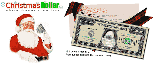 CHRISTMAS DOLLAR Hai mai desiderato che Babbo Natale ti portasse un milione di dollari? Ordina il tuo Dollaro di Natale g.r.a.t.i.s. prima che Babbo Natale finisca le sue scorte! Paghi soltanto le spese di spedizione. Questo r.e.g.a.l.o. di Natale g.r.a.t.i.s. dura solo fino al 10 Dicembre 2002! Lascia perdere i noiosi biglietti d'auguri: manda auguri di Natale più belli! + Il più bel regalo di Natale 2002: manda un milione di dollari ai tuoi cari .. e potrai vincere premi per 25.000 dollari! Spedisci questo regalo di Natale ricco di significato a te stesso e ai tuoi amici. [Traduzione letterale dalla newsletter che mi hanno inviato, e dalla descrizione sul loro sito] Commento: proprio un regalo "ricco di significato".. :-p (Prego notare che "flush" è lo sciacquone del water.) |