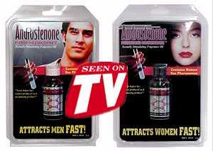 Gli stupefacenti unguenti di ferormoni umani!! 99.95$ (scontato: 49$) Traduzione letterale della presentazione del prodotto: Commento: La versione hi-tech del miracoloso pomatone dei pataccari del far-west, con una pubblicità così spudorata da non preoccuparsi delle sciocchezze che dice ("i ferormoni che produciamo vengono distrutti dai deodoranti": e la soluzione proposta non è smetterla di abusare dei deodoranti, ma di distruggere i propri ferormoni e acquistar quelli che manco a dirlo ti vendono loro). Forse è soltanto merito del profumo, o della maggior sicurezza di sè che l'aver usato questo prodotto infonde; e allora possiamo quasi perdonarli, per spacciare del banale deodorante con effetto placebo. Ma se funziona davvero, allora sì che è preoccupante: perchè dopo lo sciroppo per accendere e spegnere la tosse, e il viagra per accendere e spegnere l'erezione, viene propugnato un rimedio per accendere e spegnere le emozioni. La tendenza è sempre più quella di fare, degli esseri umani, dei robot: da accendere e spegnere a piacimento, appunto. E a controllare il bottone di on/off sarà chi avrà i soldi per comprarsi il rimedio del caso. Che, mai come in questo caso, non è altro che un subdolo espediente per barare ed ingannare il prossimo. (Altro che vantarsi di aver conquistato la propria attuale fidanzata facendole sniffare ormoni non tuoi!) La presentazione del prodotto è un po' lunga, ma vale davvero la pena di esser letta tutta - possibilmente senza lasciarsi irretire. ;-) Contate piuttosto le facili promesse e gli squallidi risultati che promettono: roba che mi si stringe il cuore.. :-( |