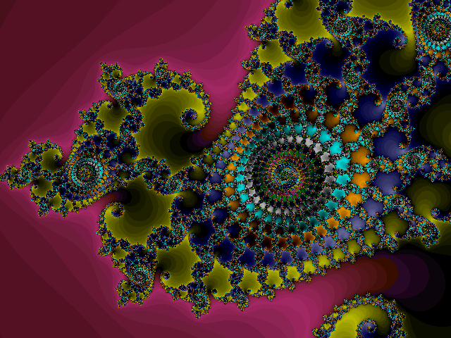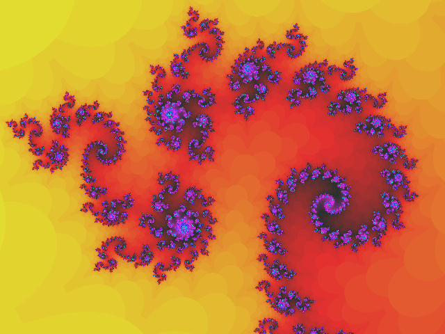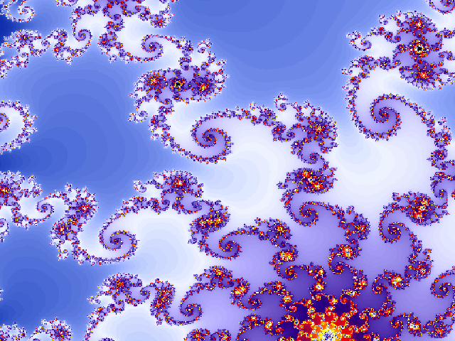 Tuttavia desidero qua proporti un facile esercizio (chiamiamolo così ;-) che potrebbe dischiuderti più di un orizzonte a riguardo: sarà sufficiente "tuffarti" nella contemplazione delle immagini che ti propongo - e tutto il resto, semplicemente accadrà da sè. SE accadrà, perchè non è garantito che accada. (Per quanto comunque non credo che esista una mente così ottusa da non venir catturata dal vortice che queste immagini evocano. C'è chi Comprenderà di più e chi di meno, ma mi stupirei sinceramente che qualcuno restasse del tutto indifferente.) Ebbene: di che si tratta? I frattàli sono immagini (perlopiù bidimensionali) che, per l'impressionante mole di calcoli che necessitano, hanno incominciato a diffondersi solamente con l'avvento dei calcolatori.