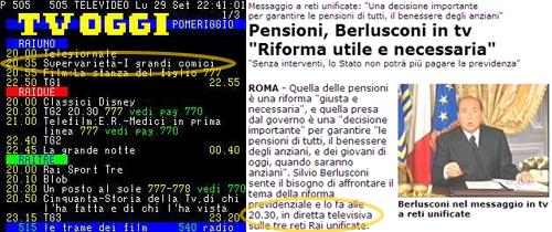 Evidentemente, dopo che Berlusconi aveva deciso di fare il discorso a reti unificate sulle pensioni, si sono dimenticati di avvisare quelli del Televideo..